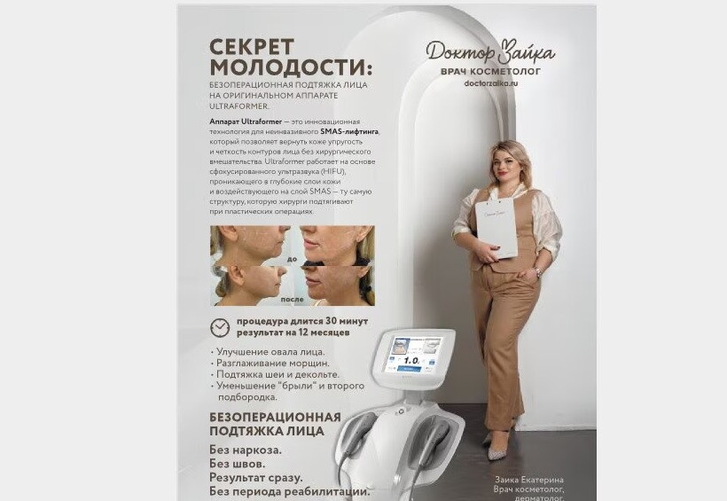 Парковка удобная, сама клиника чистая, а персонал приветливый и доступно объясняет все необходимые моменты. Радует уровень сервиса и профессионализм доктора Заики. Все процедуры выполняются быстро, без лишних навязываний, делаются только те процедуры, которые действительно нужны. Пилинг и «Атлантис» были выполнены качественно, всё прошло очень комфортно и профессионально.